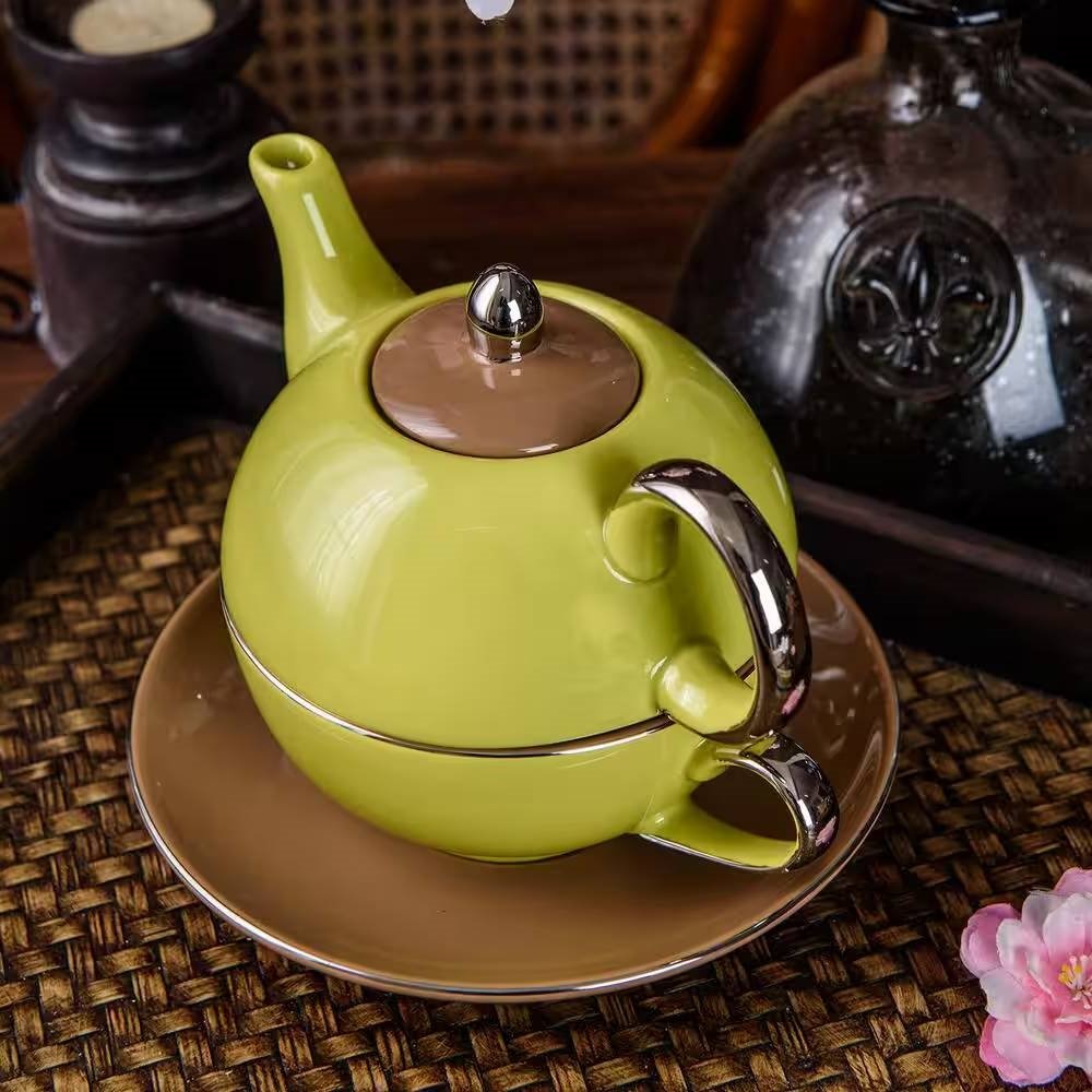 • Green Yellow Porcelain Ceramic Teapot Cup Set Dishwasher and Microwave Safe