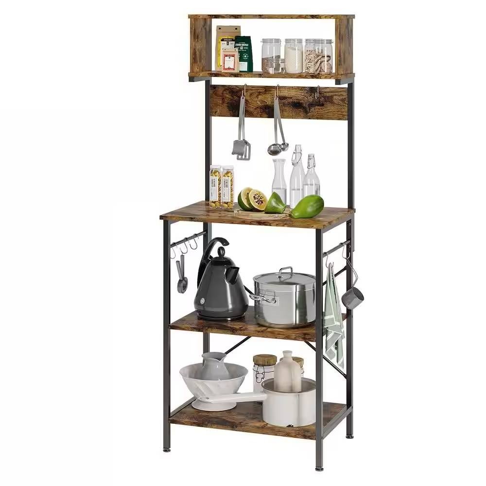 Home > sheIndustrial Modern Kitchen Metal Wood Shelf Bakers Rack Microwave Stand