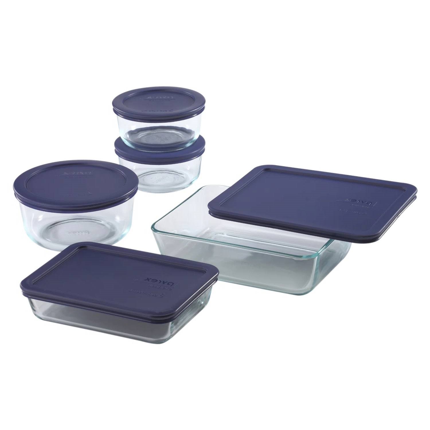 Keep your baked food and snacks well organized with the 10-Piece Glass Bakeware Food Storage Set with Blue Plastic Lids Dishwasher Safe. This 10 piece bakeware set offer sufficient space for placing all your baked cookies, cakes, and pastries. They can be safely placed in ovens, microwaves, refrigerators and freezers. Built from non-toxic borosilicate glass, the Storage Plus 10 Piece Bakeware Set from Pyrex lasts for many years. They feature a clear transparent finish with blue lids.
